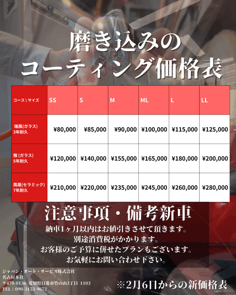 愛知県日進市にございます。カーコーティング専門店の時ャパンオートサービス株式会社です。