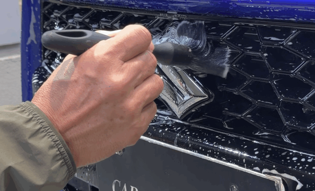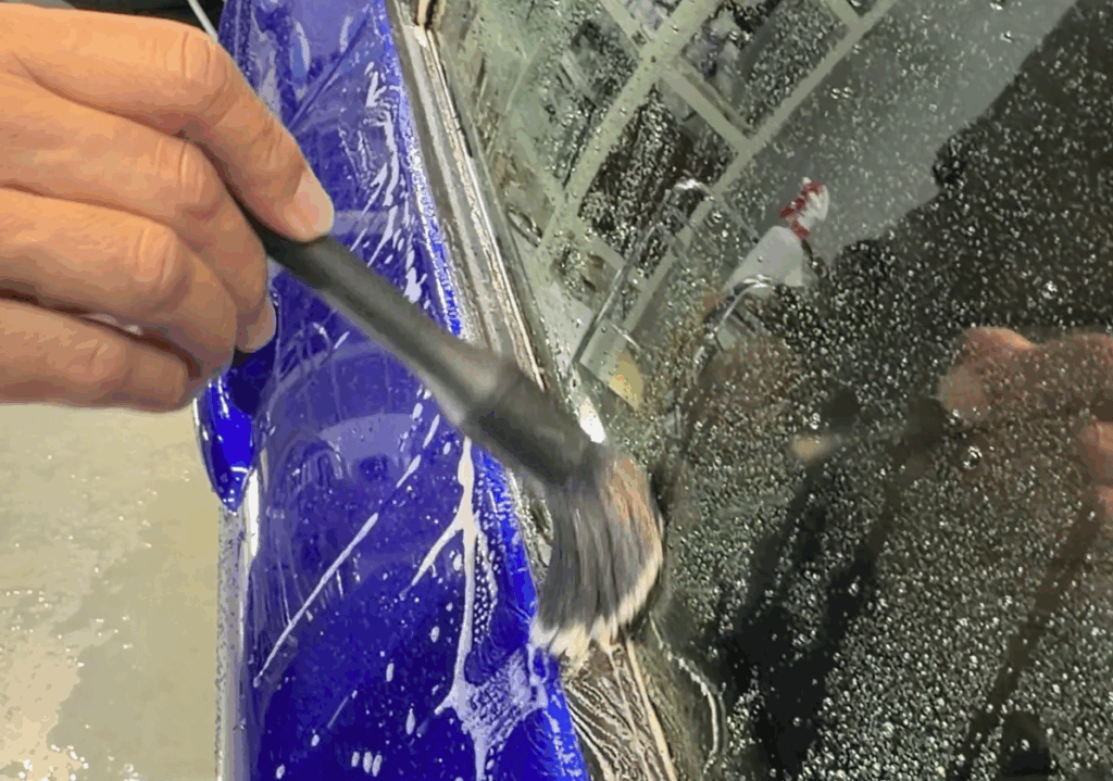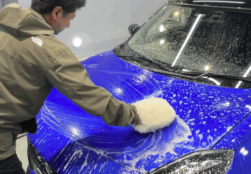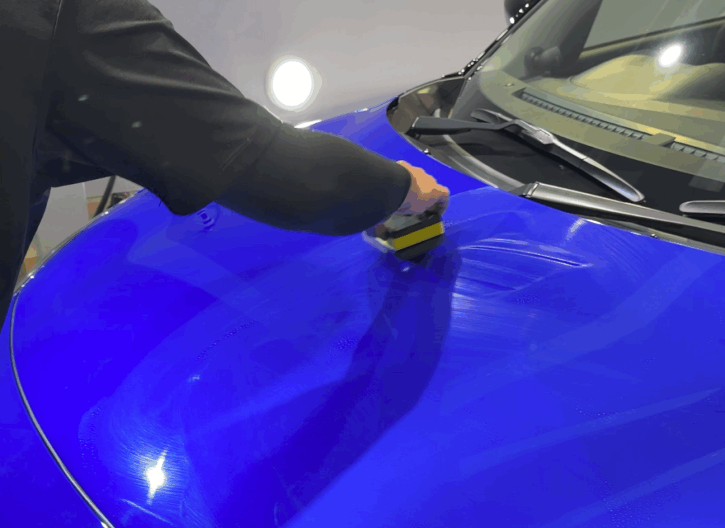 人の手で確実に保護膜を作ります。ブルーは特にコーティングムラができてしまうと
